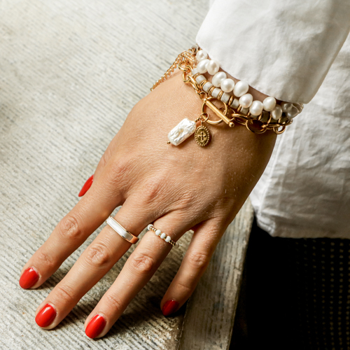 La tendencia clásico poético tradicional es un estilo femenino y romántico con un toque clásico. Elementos como las perlas de agua dulce, las cadenas Jasseron, el crystal glass y las zirconias encajan perfectamente en esta tendencia. Prueba también llevar anillos, gargantillas o también llamados chokers y collares largos.
