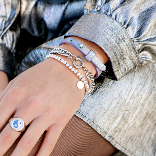 La tendencia del nuevo clásico es un estilo clásico combinado con influencias futuristas. Los materiales incluyen cadenas Jasseron con eslabones gruesos, elementos holográficos y grandes formas alargadas. Puedes crear, por ejemplo, pendientes de moda y atrevidos.