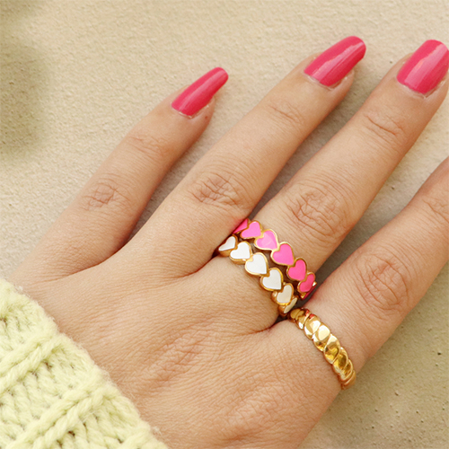 Este expositor de joyas atraerá todas las miradas en tu tienda. El expositor presenta los populares anillos de acero inoxidable del momento La combinación de 12 elegantes anillos dorados y coloridos diseños hace que este expositor sea un artículo imprescindible. Los anillos son de tamaño ajustable y se pueden ordenar por separado.
