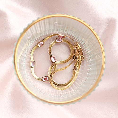 Pulseras Acero Inox de serpiente cristal Dorado-rosa