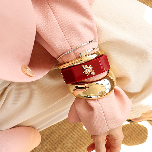 Dale un giro moderno a tu colección de joyas.¿Buscas una renovación con estilo? La tendencia del apilado de pulseras ha llegado para quedarse. Combina pulseras de resina, pulseras metálicas brillantes y atrevidos brazaletes en una auténtica arm party. ¡Mezcla, combina y crea tu propio look único!