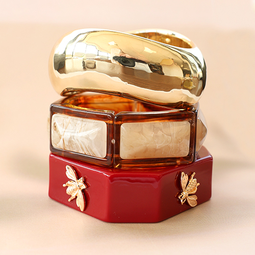 Pulseras bangle de resina con abeja Rojo oscuro-dorado
