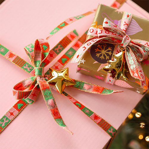 BY31® Cinta con texto lineas Navidad Rosa claro-rojo-verde-dorado