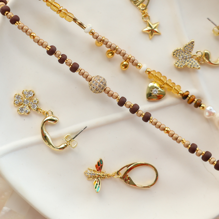 La nueva colección TQ metal de latón consta de abalorios y colgantes. Los abalorios combinan a la perfección con perlas de agua dulce, piedras naturales y rocallas Miyuki para diseñar elegantes pulseras. Además, incorpora abalorios y dijes en pendientes de moda.