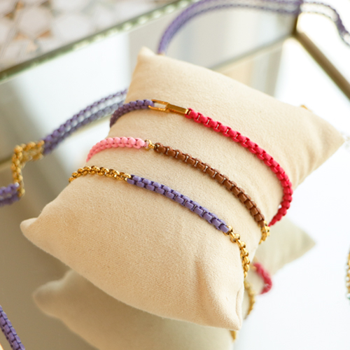 Esta serie de cadenas de colores es perfecta para diseñar pulseras y collares sencillos pero a la vez con ¡mucho estilo! Al trabajar con estas cadenas jasseron, recomendamos utilizar los cortadores laterales de Beadsmith para abrir la cadena y los cortadores planos con extremos de plástico para cerrarla. De esta forma no se dañará el revestimiento. Combina la cadena jasseron en colores con eslabones dorados y no te olvides de utilizar una bonita ¡cadena de extensión!