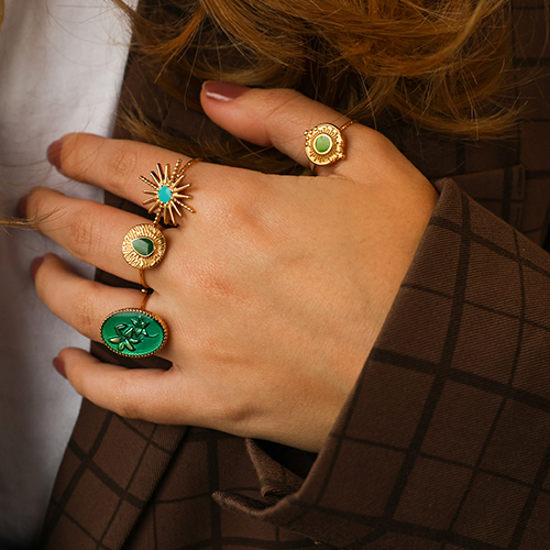 • Anillos Acero Inox esmalte redondos con gota Dorado-verde oscuro