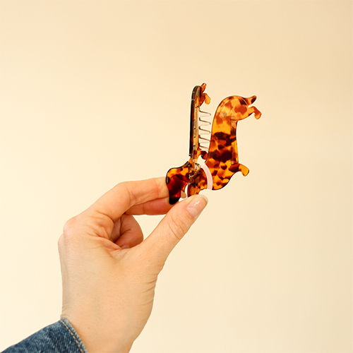Accesorios pinza para el pelo perrito salchicha Marrón-nude-dorado