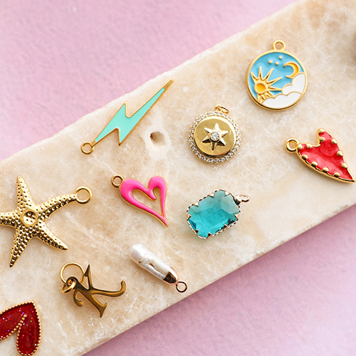¡Esta nueva colección de colgantes metálicos DQ con esmalte trae el verano a tu colección de joyería! Disponibles en colores alegres y formas como estrella de mar, tortuga, corazón, flor y estrella. Estos colgantes son la clave para crear la tendencia de joyería para el verano: los collares con colgantes. ¡Déjate inspirar y dale un toque veraniego a tu colección!
