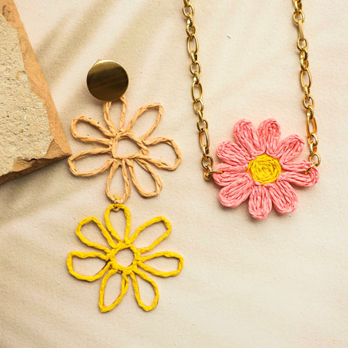 Diseña collares, pendientes y anillos con colgantes y fornituras de rafia