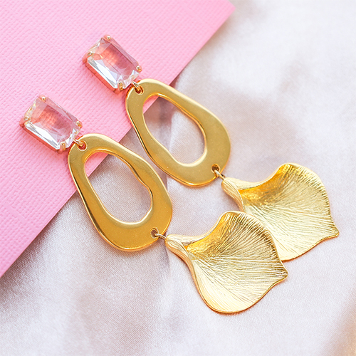 Pendientes de Cristal con anilla rectángulo Cristal-dorado