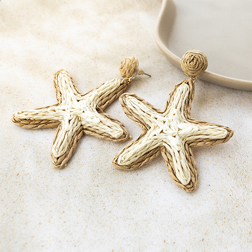 Pendientes rafia trendy estrella de mar Beige-marrón claro-dorado