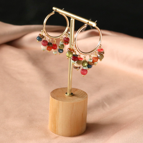 Expositor de joyería en forma de T con base de madera para pendientes (3pzas.) Naturel (color madera natural)-dorado