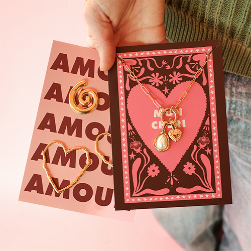 BY31® Tarjetas para joyería "Amour" Rosa-burdeos