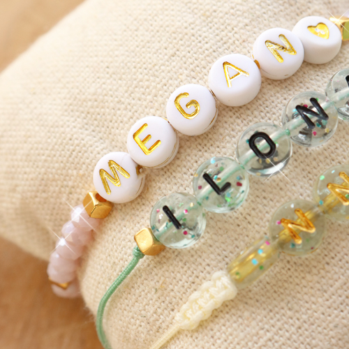 ¿Necesitas inspiración? Pulseras que puedes crear fácilmente con abalorios acrílicos de letras: