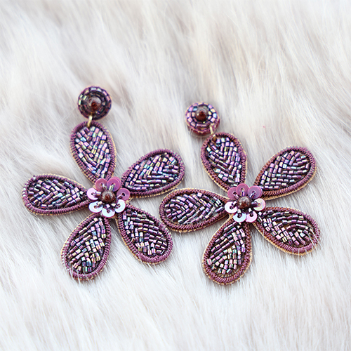 • Pendientes trendy con abalorios de vidrio flor Berenjena