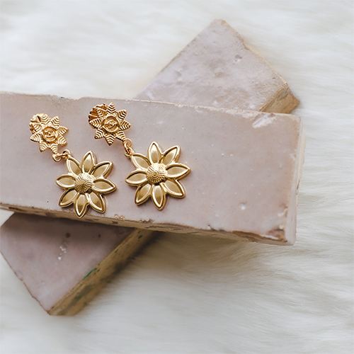 • Pendientes Acero Inox corazón relieve con anilla Dorado
