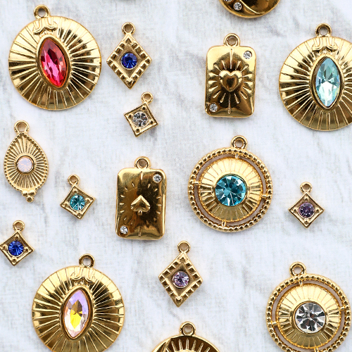 Déjate inspirar con nuestra nueva colección de colgantes de acero inoxidable y crea una colección llena de amor. Esta colección ha sido diseñada por nuestro propio equipo de diseño y está disponible en hermosas formas. Perfecta para crear collares y pendientes. ¡No te lo puedes perder!