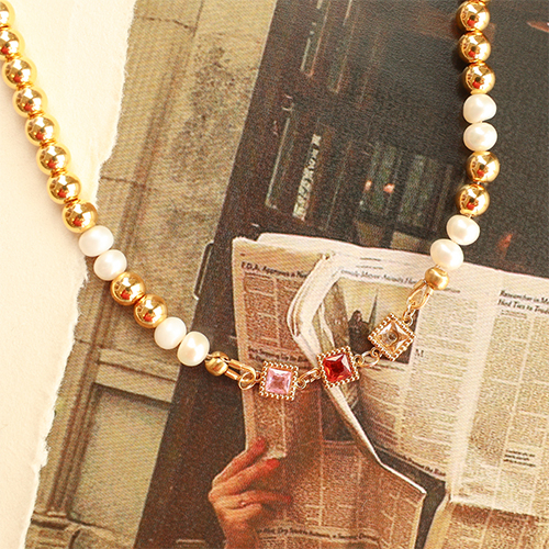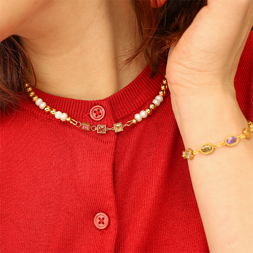 Entrepiezas acero Inox zircón cuadrado Dorado-rojo