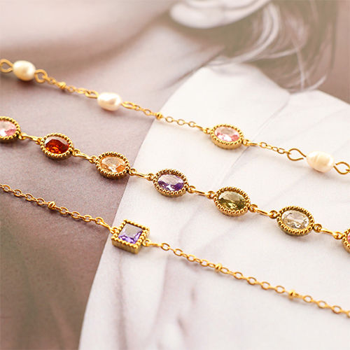 Entrepiezas acero Inox zircón óvalo Dorado-naranja claro
