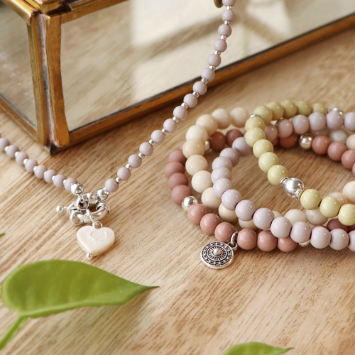 Utilizando hilo elástico, puedes crear rápidamente las pulseras más bonitas. Combina los abalorios acrílicos brillantes con las cuentas acrílicas mate de la colección para conseguir un estilo elegante y alterna los abalorios con, por ejemplo, cuentas DQ. Por último, añade un bonito colgante a tu pulsera. Te recomendamos utilizar las tarjetas de joyería para presentar y vender las dos pulseras de forma novedosa.