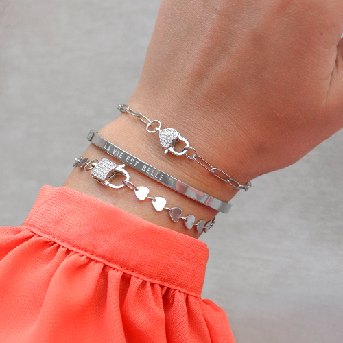 Pulseras Acero Inox 'LA VIE EST BELLE' Plateado