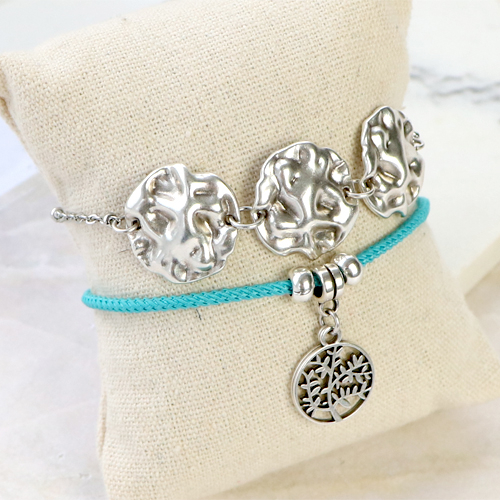 Con estos complementos metálicos podrás crear joyería con diferentes looks. Por ejemplo, Diseña una pulsera muy mona con ayuda de un hilo elástico, en el cual efilarás abalorios de cristal o piedras naturales en combinación con los abalorios metálicos DQ. Los abalorios metálicos DQ también se pueden enfilar con nuestro cordón trendy o cuero. Para cerrar la pulsera puedes utilizar un cierre magnético y ¡listo! Otro consejo es combinar nuestro cuero de 2mm con una entrepieza de jasseron y decorar con tu colgante favorito. ¡Buena suerte!