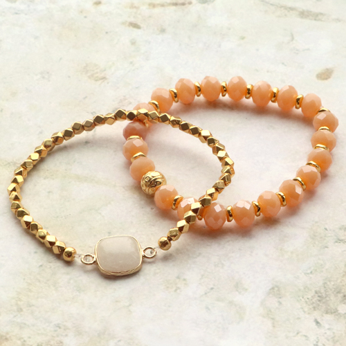 ¡Con las nuevas cuentas faceteadas puedes hacer todo tipo de joyas posibles e imaginables en tus colores favoritos! Para este juego de inspiración, hemos hecho pulseras con cuentas faceteadas y de otros tipos. Para crearlas, enhebra las cuentas facetadas en un hilo elástico. Puedes variar con abalorios y cuentas metálicas DQ para conseguir un efecto animado. Después de ensartar una bonita combinación de abalorios en el hilo elástico, cierra la pulsera haciendo un nudo y asegurándolo con pegamento instantáneo. Otra idea es la combinación de las cuentas facetadas, entrepiezas y los colgantes de piedra natural que también son un complemento perfecto para joyería de tendencia. Lleva preciosas pulseras de abalorios faceteados junto con pulseras de hematita y cuentas de lava katsuki. Ahora es tu turno, ¡disfruta!