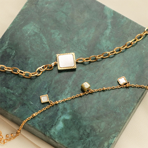 Estos colgantes de acero inoxidable con concha quedan muy bien en cualquier tipo de joyería. Monta un colgante en una cadena de acero inoxidable ya hecha y tendrás un elegante collar un santiamén. O crea una pulsera de colgantes en la que alternes los colgantes de acero inoxidable con colgantes hechos por ti misma con piedras naturales, cuentas de cerámica y bastones metálicos con anilla. Diseña con cuentas facetadas e hilo elástico una colorida pulsera que podrás llevar junto con las otras pulseras.
