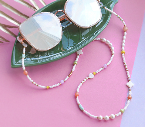 ¿En busca de ideas de joyería en los colores de moda hoy en día? Para este set de inspiración hemos elaborado joyas de moda utilizando abalorios Polaris Elements en tonos pastel. Combinando perlas de agua dulce, rocallas, concha y las cuentas Polaris Elements, obtendrás una sofisticada piezas de joyería. Crea los pendientes deslizando las cuentas Polaris Elements, rocallas y conchas en un bastón metálico. A continuación, fíjelos a una fornitura de pendiente de acero inoxidable con ayuda de un alicate de punta redonda. Para hacer una pulsera a juego, solo enfila la misma combinación de cuentas en un alambre, y sujétala con unas chafas, un mosquetón y una extensión de cadena. Para completar el look veraniego, también puedes hacer un cordón de gafas de sol de tendencia.