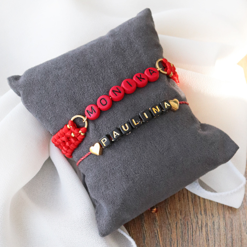 Esta vez proponemos una joyería inspirada en madre & hija con ayuda de los abalorios letras acrílico. Con estos abalorios es posible personalizar tus creaciones de joyería y accesorios con simpáticos textos o nombres y un hilo elástico en color. También es posible combinarlos con las piedras naturales y abalorios metálicos DQ. Además, puedes decorar las pulseras con una divertida borla o colgante metálico DQ. Para una presentación mucho más atractiva para tus pulseras te recomendamos utilizar uno de nuestros bolsos.