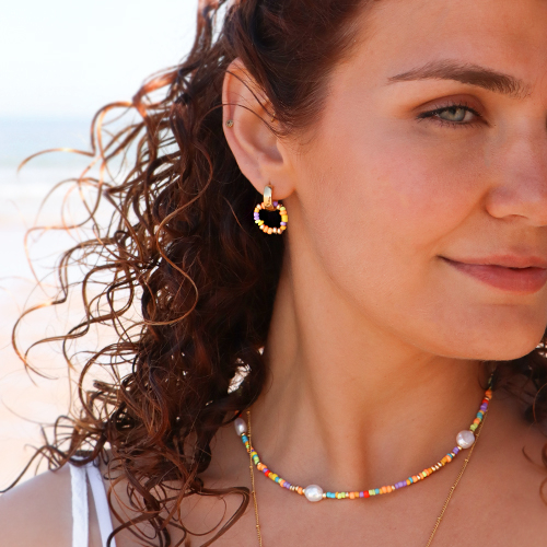 Crea elegantes pendientes ensartando cuentas Miyuki y Rocallas de varios colores en hilo de nailon. ¿Te gustan los colgantes originales? A continuación, crea un bonito colgante con alambre artístico (artistic wire) y una cuenta acrílica. A su vez, enhebra una serie de cuentas Miyuki en el alambre. Gira el alambre en la parte superior y haz otra capa con cuentas Katsuki. Coloca el colgante en una cadena Jasseron para conseguir una pieza de joyería súper atractiva.