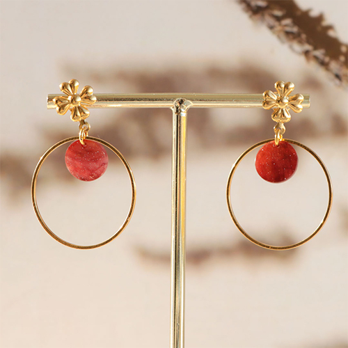 • Colgantes tejidos con hilo macramé y abalorios faceteados gota Dorado-rojo metálico