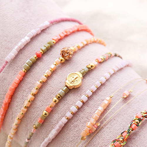 Estos diseños de bisutería son ideales para cualquier outfit, ya que cuentan con un fino y colorido estilo minimalista. Debido a que estos abalorios son muy versátiles los combinamos con diferentes elementos como: los abalorios metálicos DQ, cuentas faceteadas y rocallas Miyuki. También utilizamos diferente tipo de material de enfilado como el práctico hilo macramé, hilo Beadalon nymo y el hilo metálico. Y para cerrar con broche de oro utilizamos chafas, cierre de macramé y mosquetones.