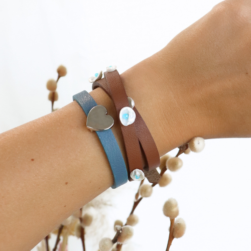 Las combinaciones más bonitas con las pulseras Cuoio pueden ser diseñadas fácilmente por ti mismo. En primer lugar, elige su ancho y color de pulsera Cuoio favorito. Luego, puedes estilizar tu pulsera. Para ello, se pega un cabuchón de tu elección en un engaste a juego. A continuación, puedes deslizar fácilmente una o varias correderas con engaste sobre la pulsera. Dale un toque extra a tu pulsera colocando bonitos colgantes. ¿Qué tal un colgante metálico DQ o una perla de agua dulce? Si lo tuyo es la creatividad también puedes optar por decorar la pulsera con perlas planas de agua dulce y piedras naturales. Se pueden coser a mano en la pulsera. De este modo, podrá personalizar la pulsera por completo. ¡Mezcla y combina tu colección con tu propio estilo!