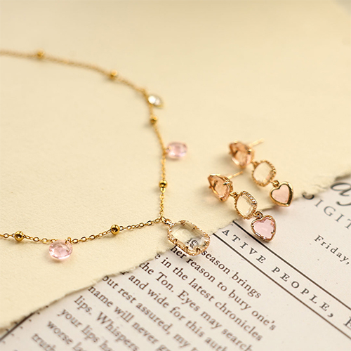 Colgantes de cristal corazón Rosa claro-dorado