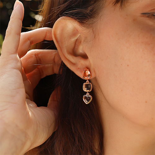 Pendientes de Cristal rectángulo Rosa-naranja ámbar-beige arena