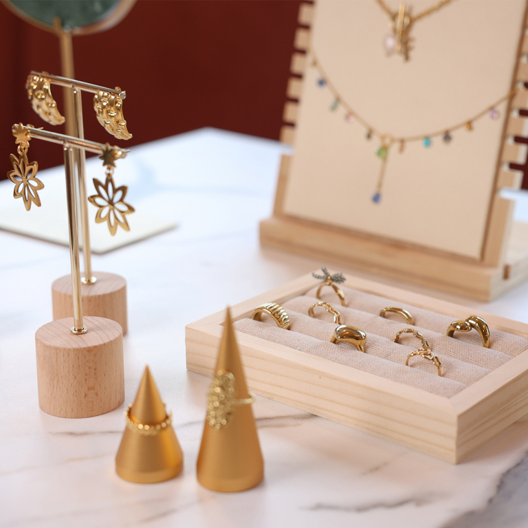 Expositor de joyería para diversos tipos joyas Natural-dorado
