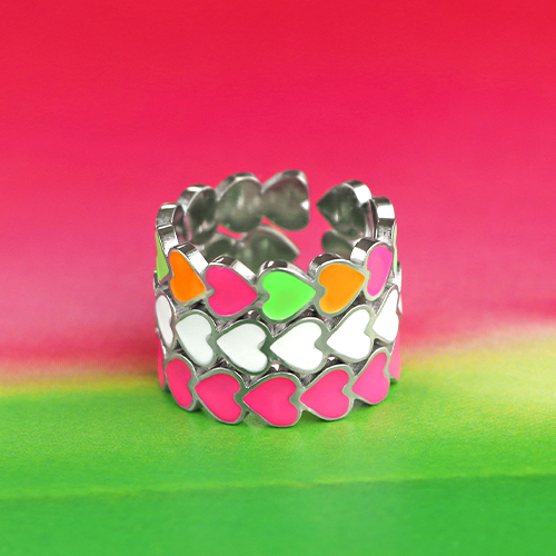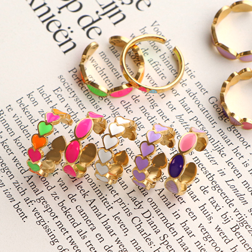 Anillos Acero Inox esmalte corazón Neón multicolor-dorado