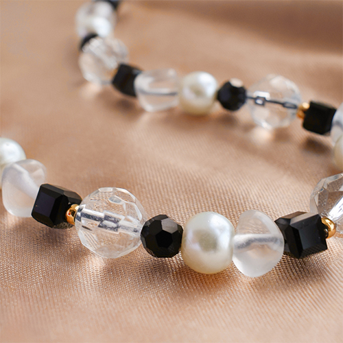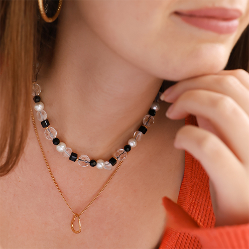 Las cuentas están disponibles en negro y transparente. Incorpóralos a bellos collares que llevarás junto con una cadena de jasseron. ¡Diseña elegantes pendientes largos como toque final!