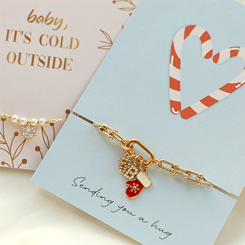 • Tarjetas para joyería "Baby, it's cold outside" Rosa claro