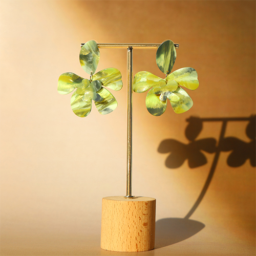 • Pendientes resina trendy flor Marrón mármol-dorado