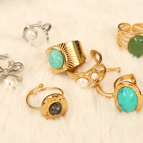 • Anillos Acero Inox con imitación de piedra natural Dorado-turquesa