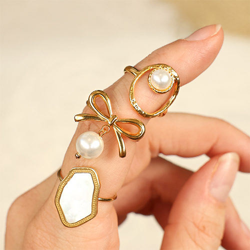 • Anillos Acero Inox con piedra natural Dorado-rosa claro