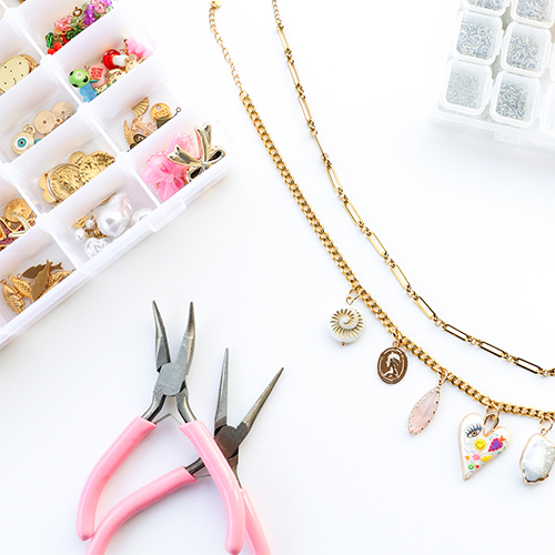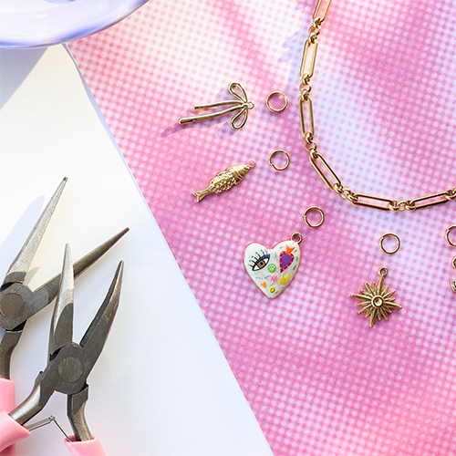 Crea un collar con colgantes metálicos funky con esmalte