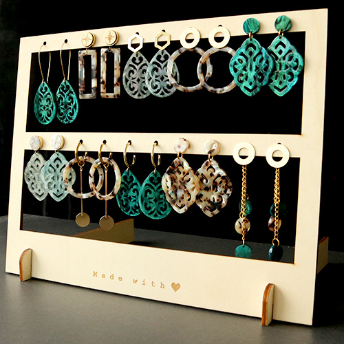 Expositor de Joyería en Bambú para pendientes con 2 hileras"made with ♥" Natural (color Bambú natural)