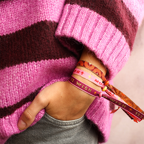 Nuestra nueva colección de cintas con texto, diseñada por nuestro propio equipo, está disponible en colores alegres como rosa, morado y azul, con textos de moda como "Wish", "Off piste" y "Après ski". Perfecta para crear pulseras con un abalorio de cierre delizante, llaveros divertidos, decorar tu forfait o envolver regalos de forma festiva. ¡Añade un toque único y personal a tus creaciones estas fiestas!