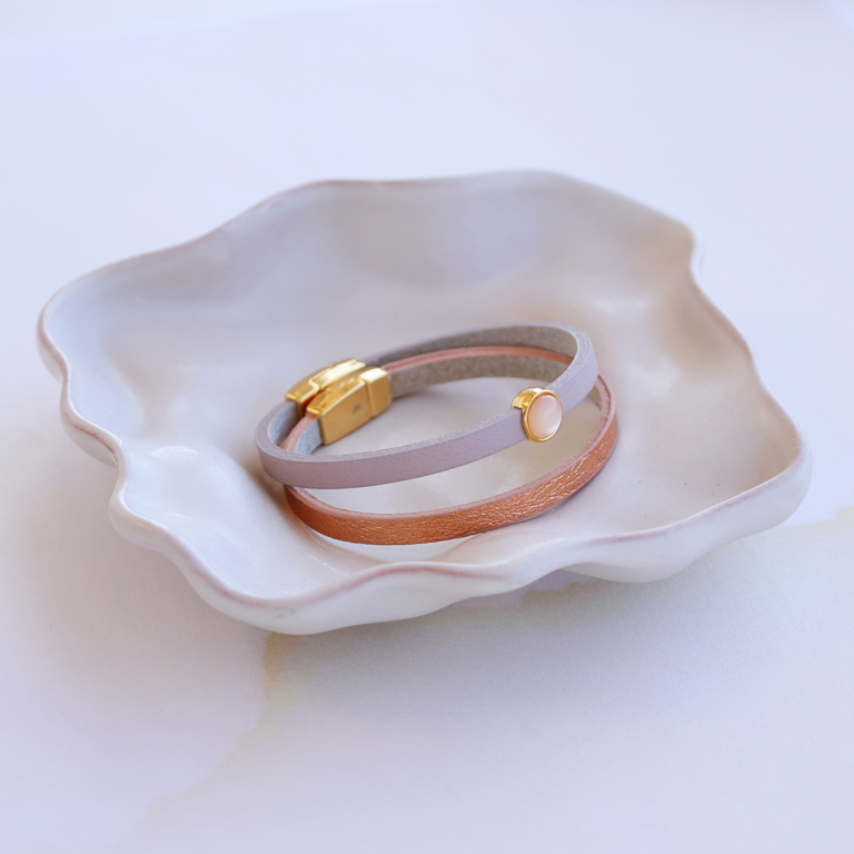 Estas chulas carteras de mano, monederos y correas para bolso están confeccionadas en piel italiana. Los monederos están disponibles en tamaño mediano y pequeño. Fija las correas de 5 y 10 mm a las carteras o incorpóralas a las pulseras para crear un look elegante.