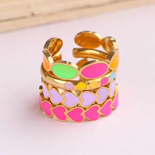 Anillos Acero Inox esmalte smiley Neón multicolor-dorado