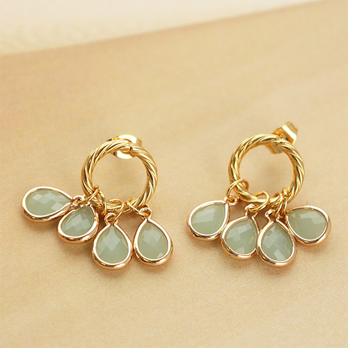 Colgantes de cristal gota 11x7mm verde ópalo-dorado
