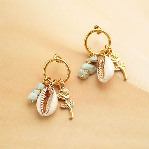 Colgantes conchas kauri especial Crema beige-dorado